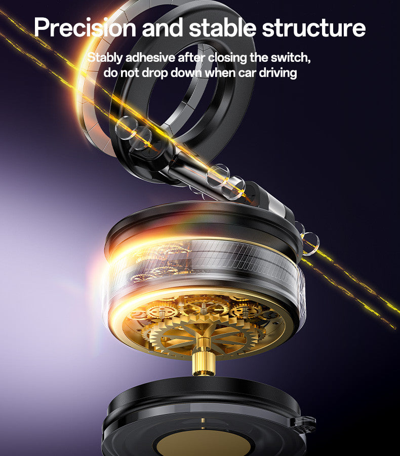 This high-performance phone holder features a 360° rotating telescopic arm that folds down when not in use, giving you full control over positioning while saving space on your dashboard. The strong 16N magnet ensures your phone stays secure, even on bumpy roads, while the vacuum suction cup base locks into place for a no-slip grip without leaving marks.