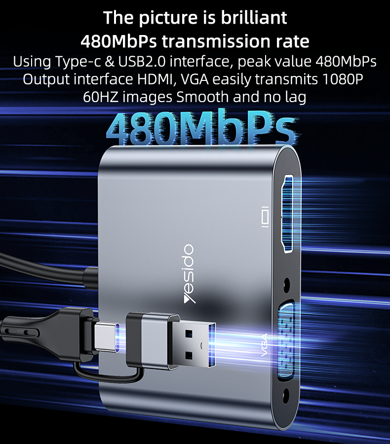 Yesido HM15 Ultra-Low Latency USB/Type-C to HDMI/VGA Laptop Screen Splitter